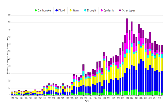 图1 全球重大自然灾害统计1950-2015