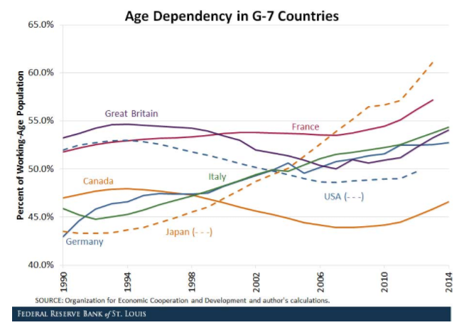 图3 G7国家劳动人口占比下降