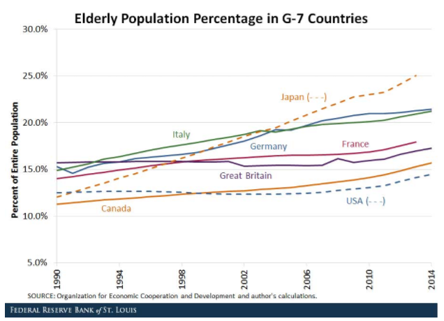 图4 G7国家老龄人口占比上升