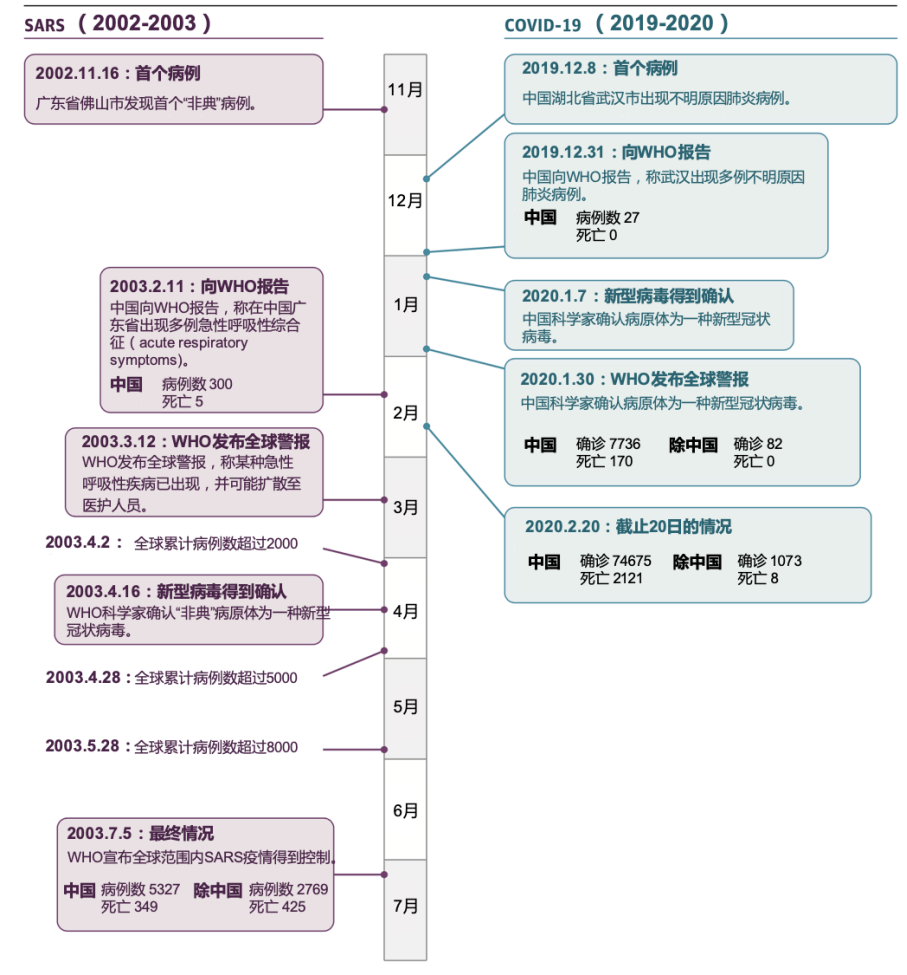 图2 SARS疫情与新冠疫情的时间轴对比