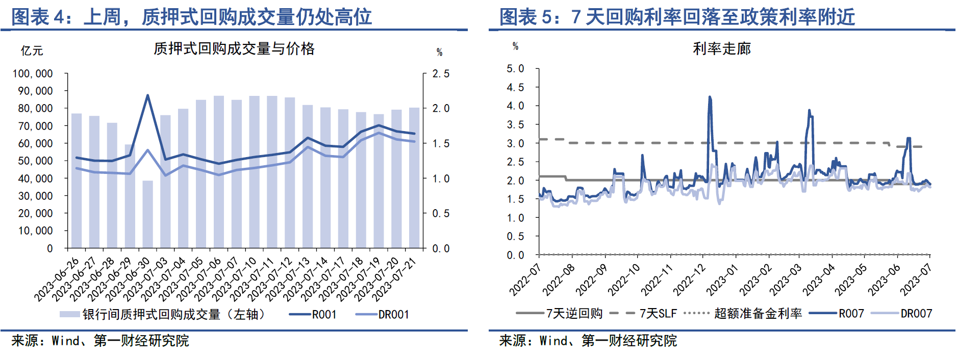 上周为7月季度缴税高峰,为了应对税期对市场流动性的可能冲击,央行加大了对市场的货币投放力度。上周,央行通过7天逆回购共投放1120亿元,有310亿元逆回购到期,净投放810亿元。
