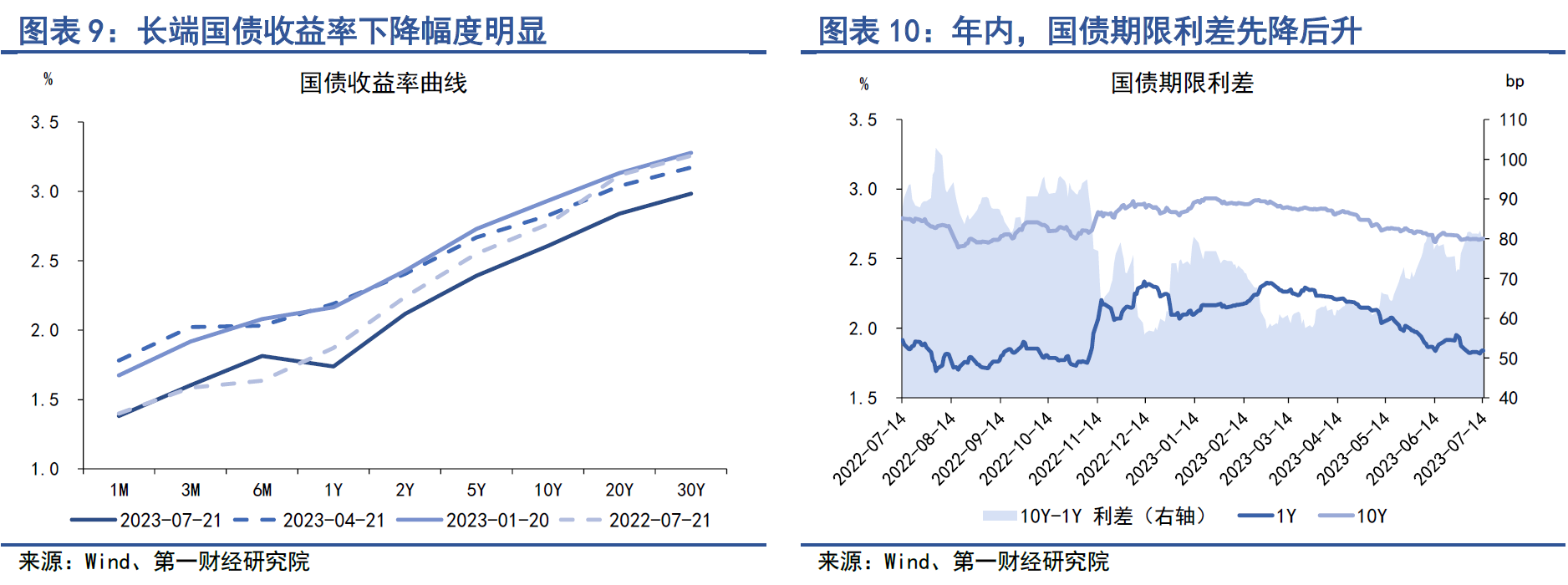 上周,国债期限利差进一步扩大。截至7月21日,10年期与1年期国债的期限利差为86.94bp,较前一周上升6.35bp,年内国债期限利差上升13.1bp。
