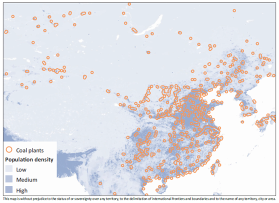 图2 中国的火电站多建在人口稠密的地区(2015)