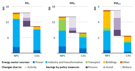注:NPS=新政策情景;CAS=清洁空气情景