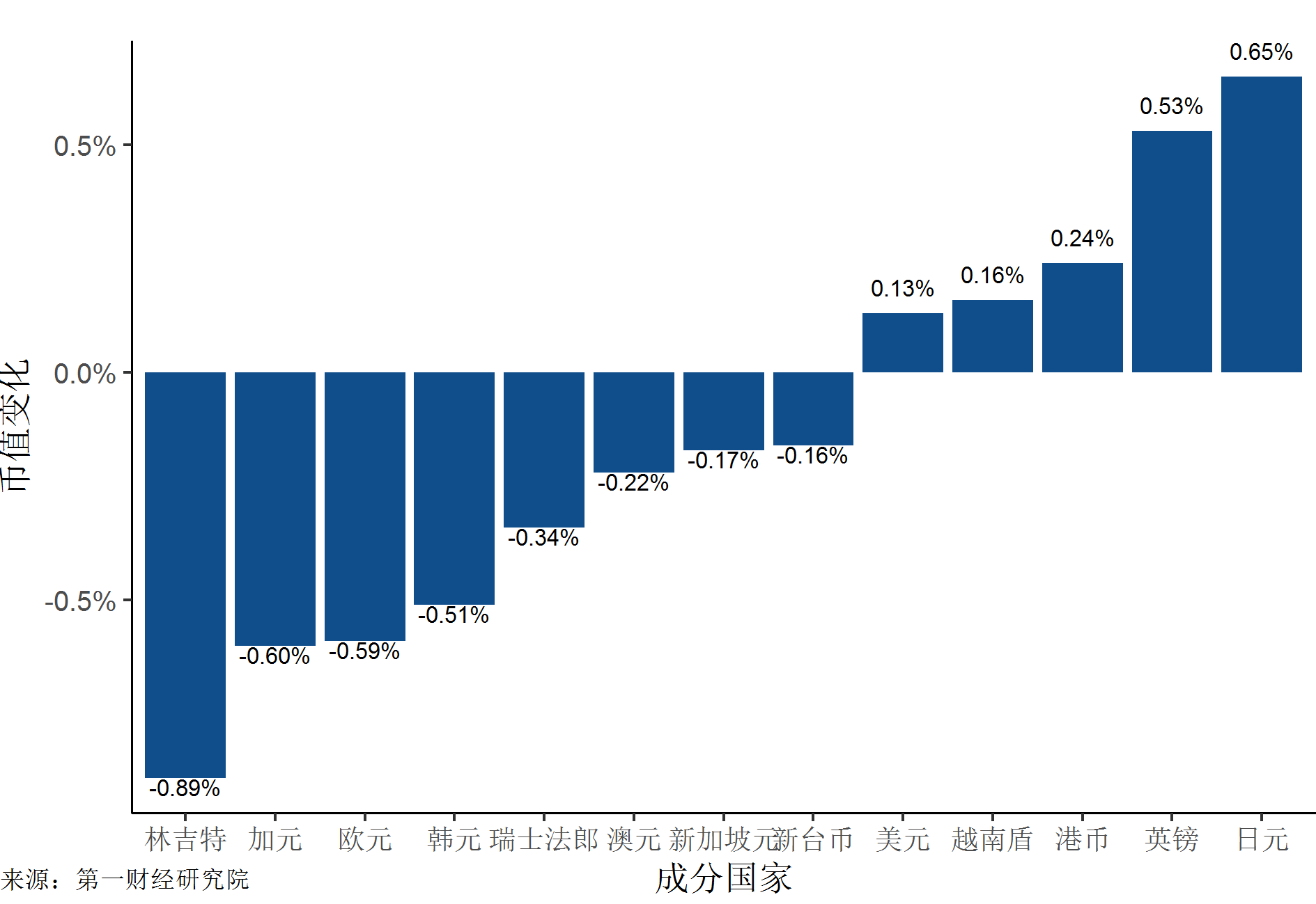 图 第一财经研究院人民币指数成分货币对人民币币值变化(2017年5月19日-5月26日)
