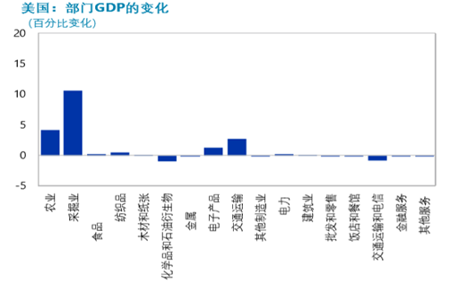图3 有管理的贸易协议对中美各部门GDP的影响