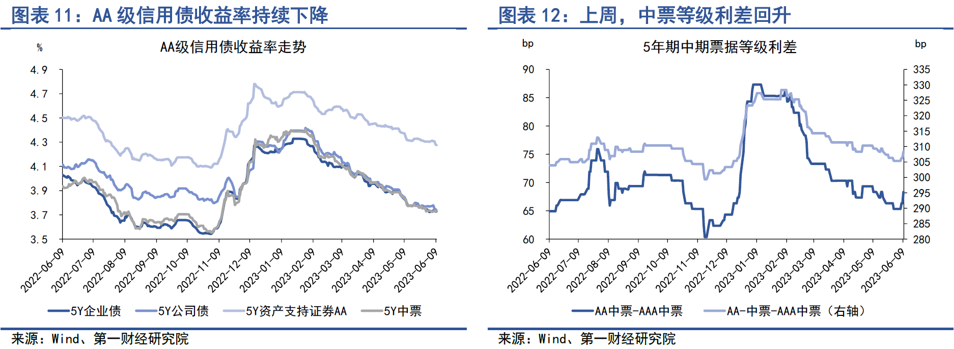 从年内来看,信用债收益率下降幅度明显。截至6月9日,在AAA级债券中,5年期企业债、公司债以及中票收益率均下降46bp左右,5年期资产支持证券收益率下降约34bp;在AA级债券中,5年期企业债、公司债以及中票收益率均下降50bp至60bp,5年期资产支持证券收益率下降约35bp。