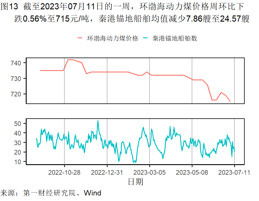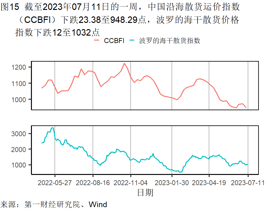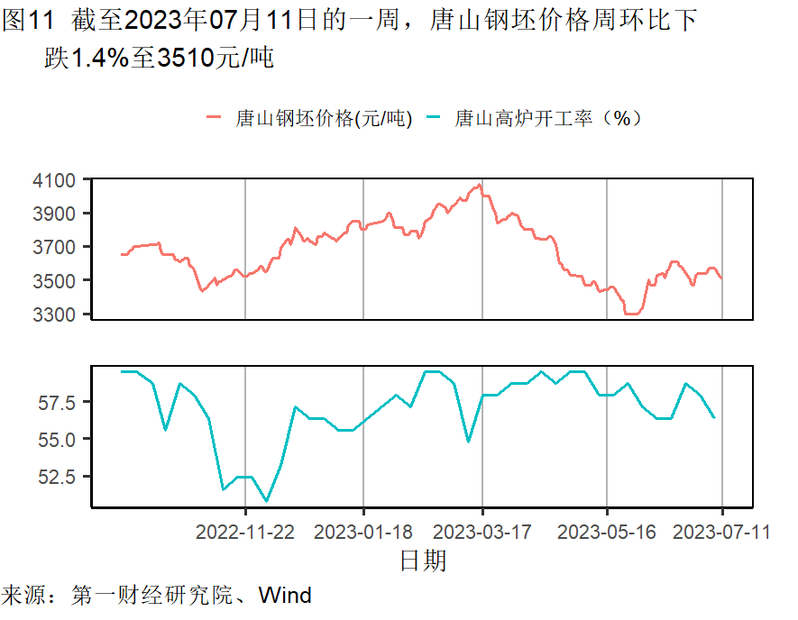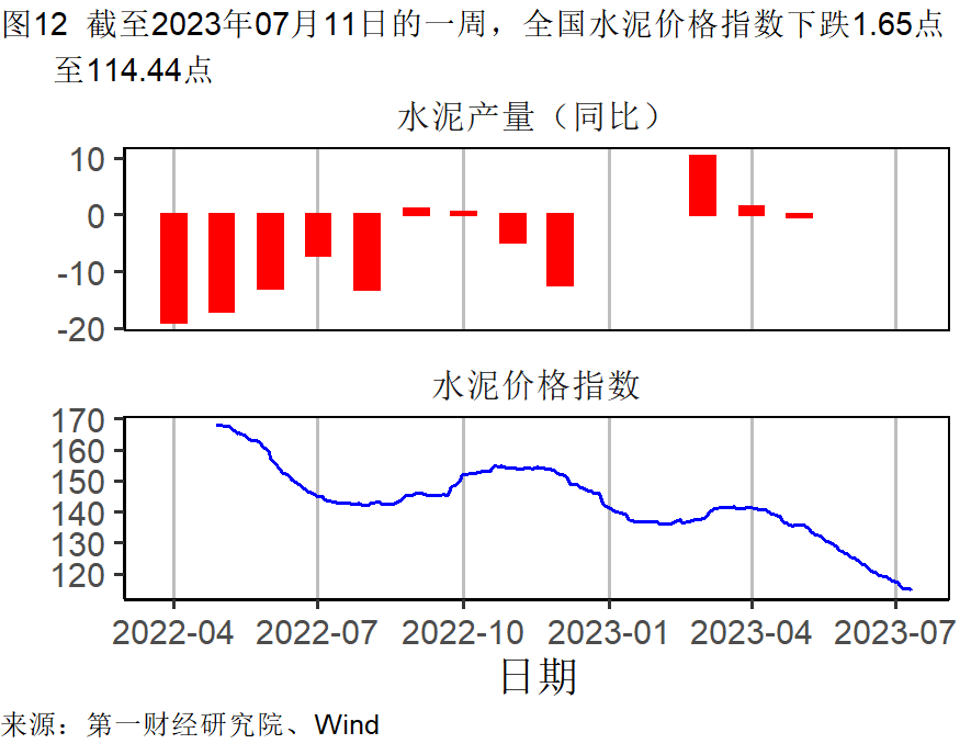 本周唐山钢坯价格回落,钢铁价格在截至7月11日的一周下降了1.40%,较过去一个月下降0.57%,较去年同期下降了8.12%。水泥及动力煤价格持续走低。水泥价格在截至7月11日的一周下降了1.42%,过去一个月下降了7.13%,较去年同期下降了20.04%。动力煤价格月内下降了0.14%,较去年同期下降了2.46%。