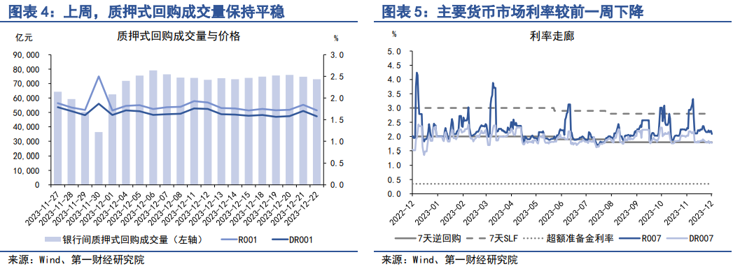 上周,银行间市场流动性充裕,在经历了11月末至12月初流动性紧张的局面后,目前主要货币市场利率回落至政策利率附近,金融机构资金面保持平稳。