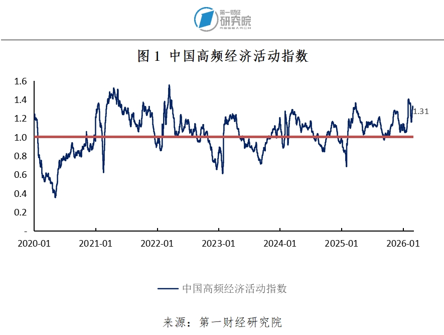 2026年3月3日第一财经研究院中国高频经济活动指数(YHEI)为1.31,较2月24日上升0.06。具体来看,截至3月3日的一周内,“30城市商品房销售指数”回升0.29;“8城市地铁流量指数”回升0.37,是本周YHEI走高的重要原因。工业相关指标“沿海煤炭运价指数”和“进口干散货运价指数”在周内则分别下降0.03和0.24。